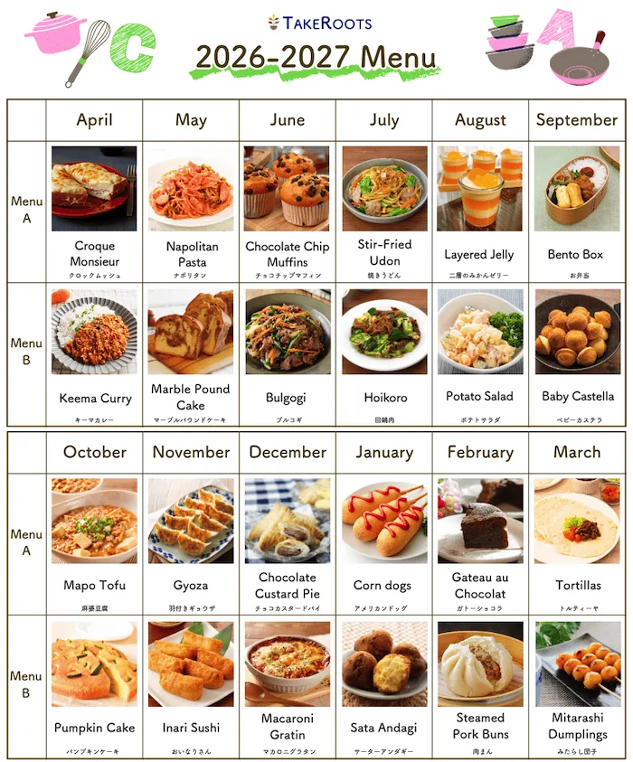 | 受講料 | 月2回コース:9,500円 ※すべて税込み表示です ※食材費・教材費を含んだ合計の料金です |
